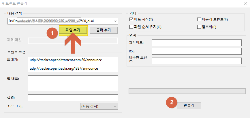 토렌트 공유 파일 업로드 전송 하는 방법 - 토렌트 파일 만들기