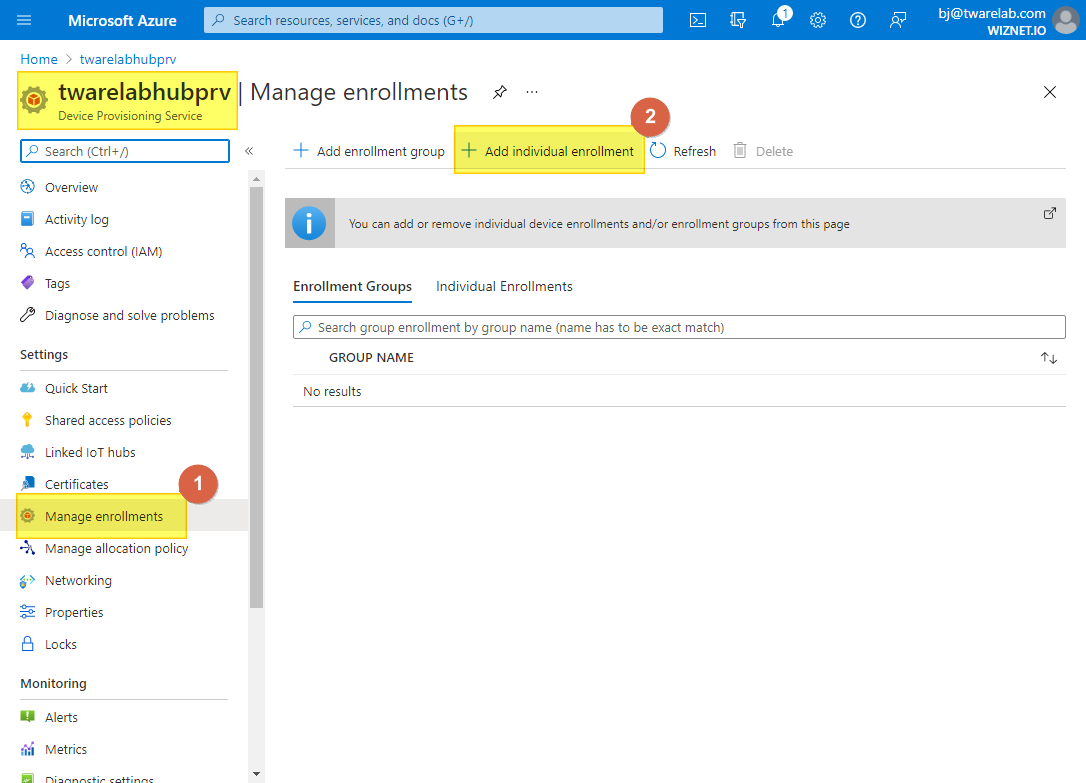 [MUST] For Device Provisioning service creation, please follow up the Quickstart: Set up the IoT Hub Device Provisioning Service with the Azure portal document first.