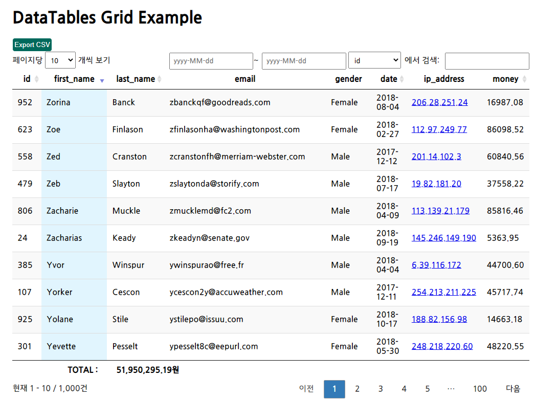Grid 라이브러리-Datatables 사용법/예제