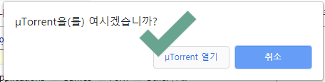 주소를 클릭하면, 설치해 둔 uTorrent 프로그램 같은 토렌트 다운로드 프로그램이 실행 된다. 물론 큐빗토렌트 같은 다른 프로그램이 설치되어 있으면 해당 프로그램이 대신 실행될 것이다.